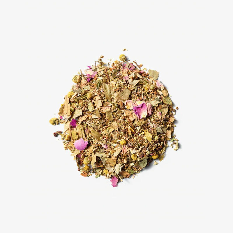 ingrediënten lindebloesem, vlierbloesem, kamille, karwij, rozenblad